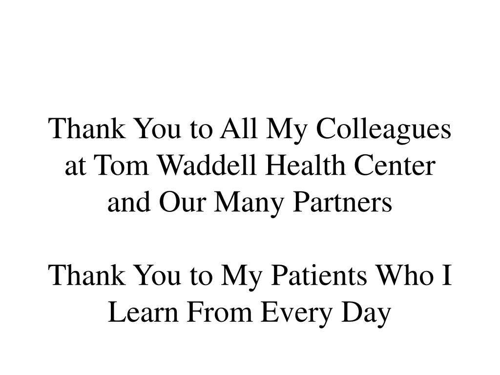 Thank You to All My Colleagues at Tom Waddell Health Center and Our Many Partners Thank You to My Patients Who I Learn From Every Day