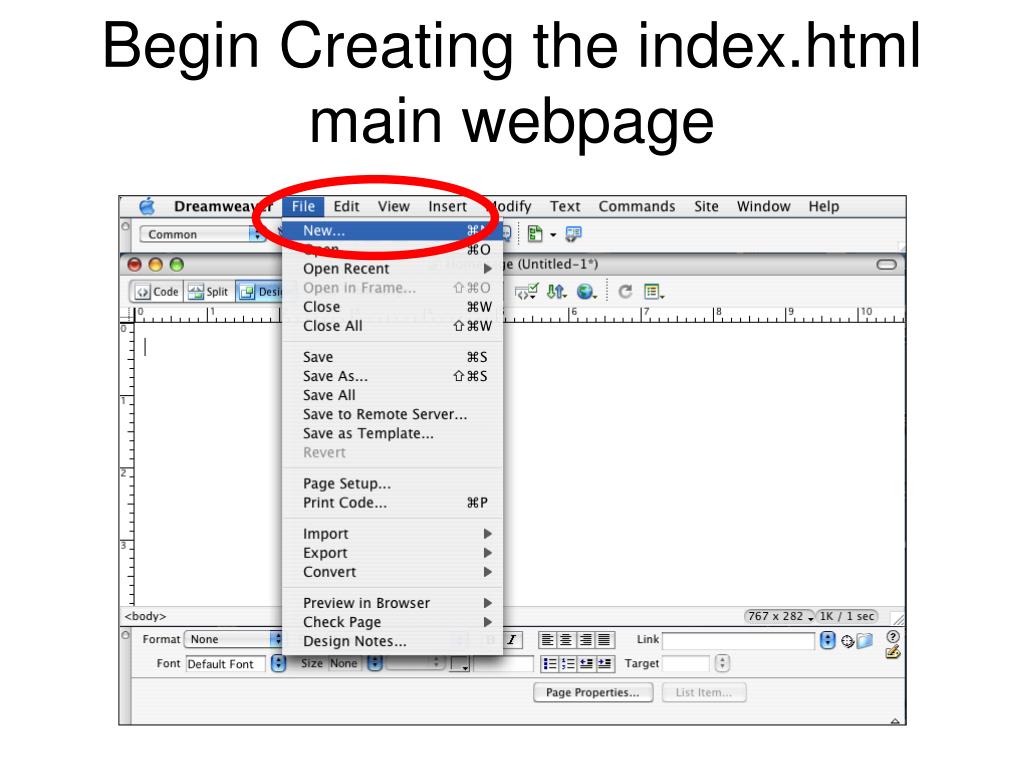 File>Save As, Provide Name & Location Example index.html or standards.html