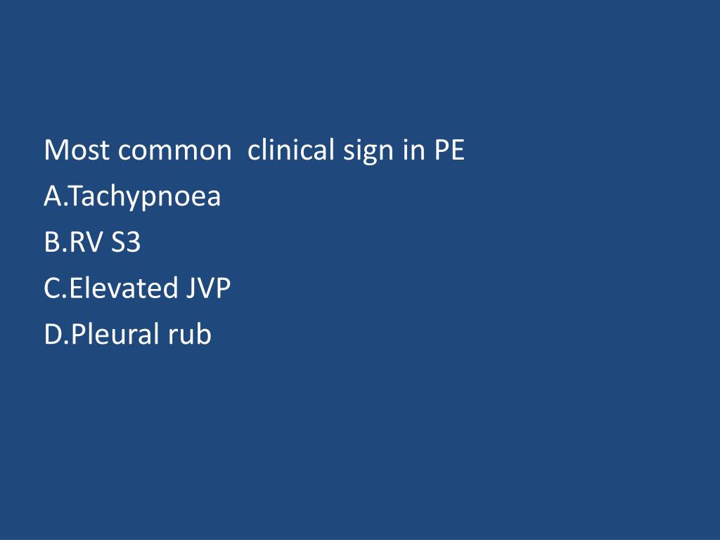 Most common clinical sign in PE A.Tachypnoea B.RV S3 C.Elevated JVP D.Pleural rub