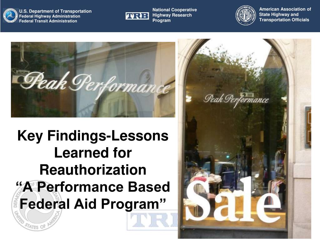 Key Findings-Lessons Learned for Reauthorization“A Performance Based Federal Aid Program”