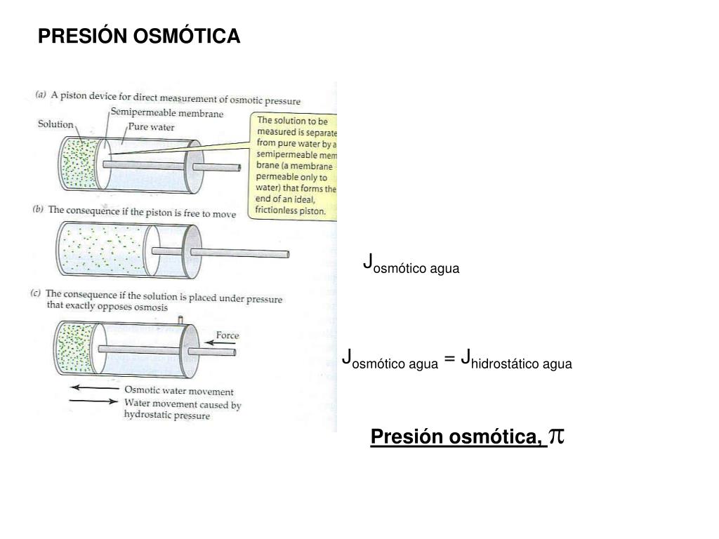 PRESIÓN OSMÓTICA Josmótico agua Josmótico agua= Jhidrostático agua Presión osmótica, p