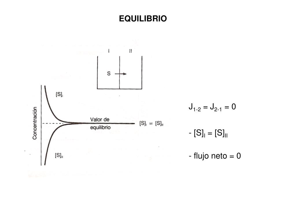 EQUILIBRIO J1-2 = J2-1 = 0 • [S]I = [S]II • - flujo neto = 0