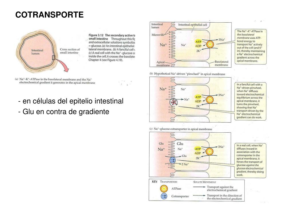 COTRANSPORTE • en células del epitelio intestinal • Glu en contra de gradiente