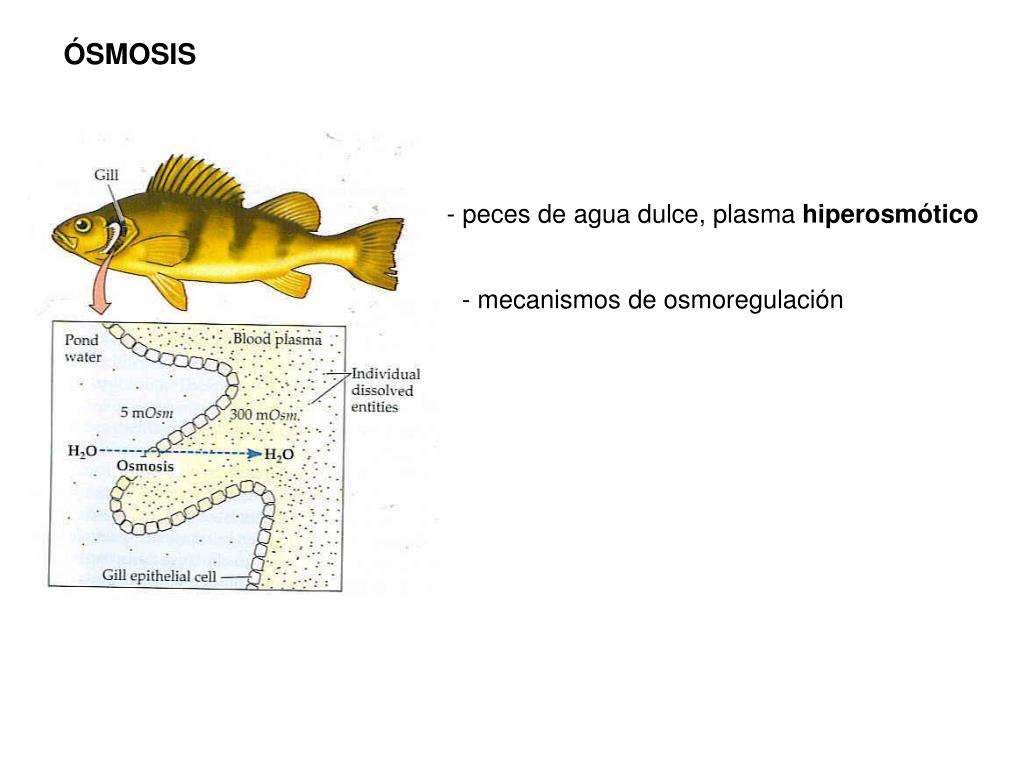 ÓSMOSIS - peces de agua dulce, plasma hiperosmótico - mecanismos de osmoregulación