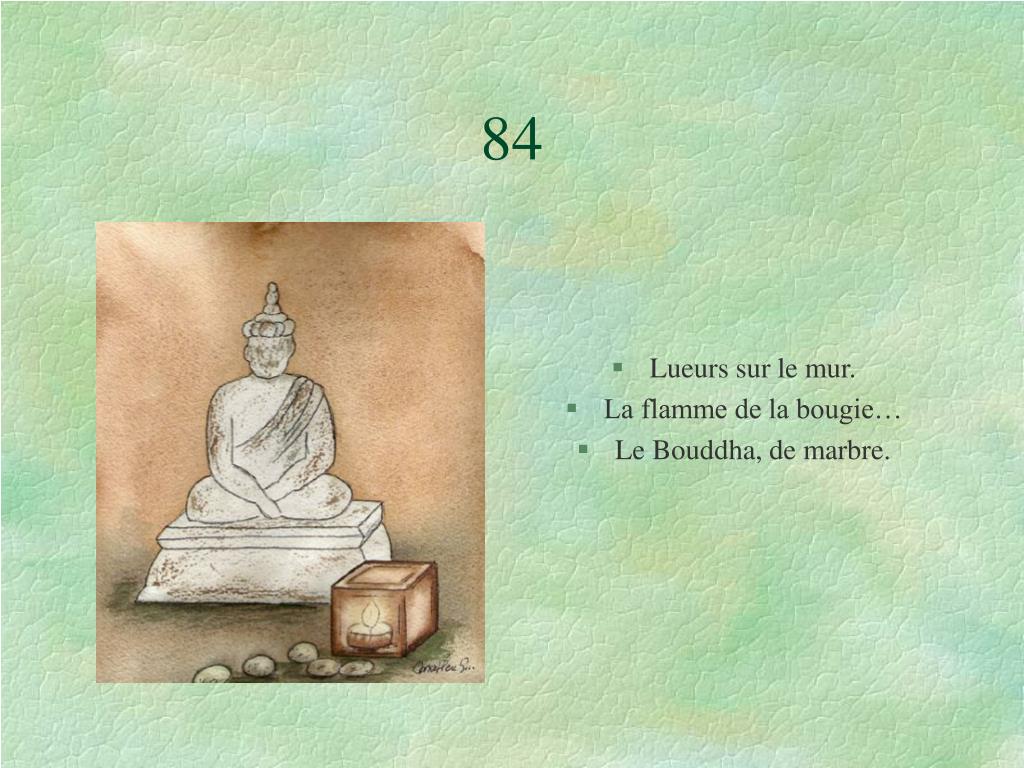 84 • Lueurs sur le mur. • La flamme de la bougie… • Le Bouddha, de marbre.