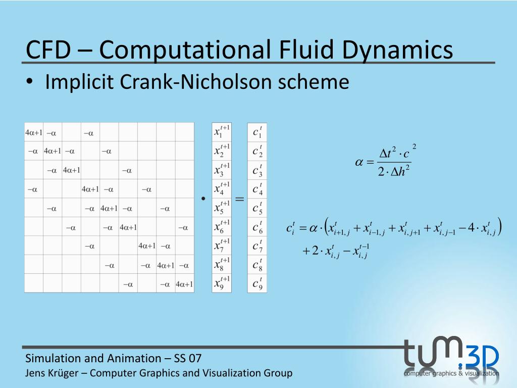 CFD – Computational Fluid Dynamics • Implicit Crank-Nicholson scheme