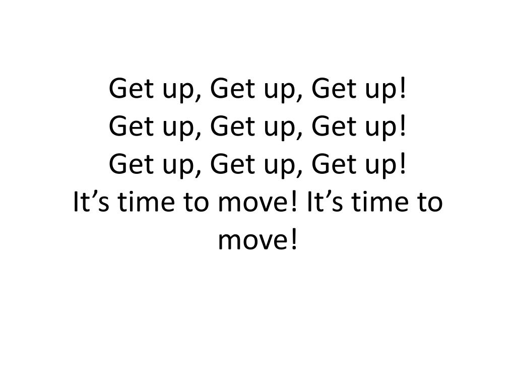Get up, Get up, Get up! Get up, Get up, Get up!Get up, Get up, Get up!It’s time to move! It’s time to move!