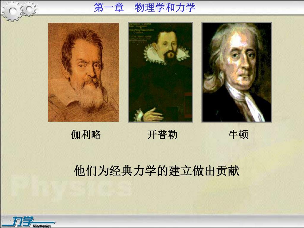 第一章 物理学和力学 伽利略 开普勒 牛顿 他们为经典力学的建立做出贡献