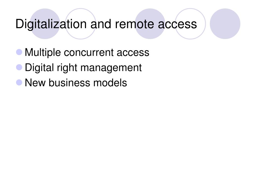 Digitalization and remote access • Multiple concurrent access • Digital right management • New business models