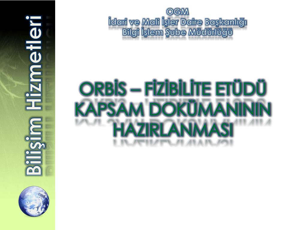 OGM İdari ve Mali İşler Daire Başkanlığı Bilgi İşlem Şube Müdürlüğü Bilişim Hizmetleri • ORBİS – FİZİBİLİTE ETÜDÜ KAPSAM DOKÜMANININ HAZIRLANMASI