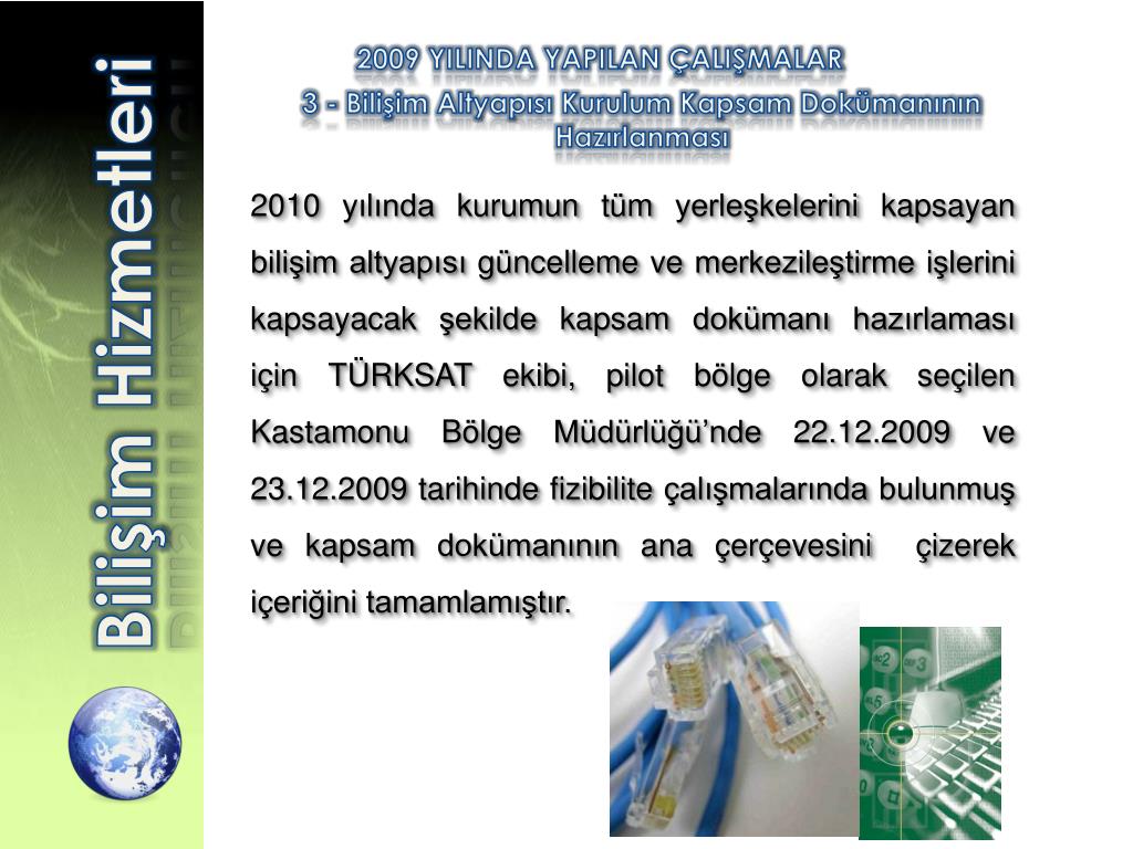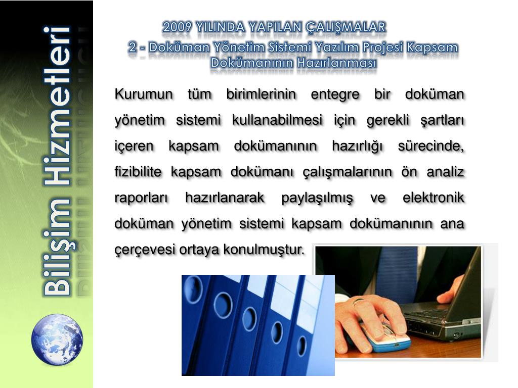 2009 YILINDA YAPILAN ÇALIŞMALAR Bilişim Hizmetleri