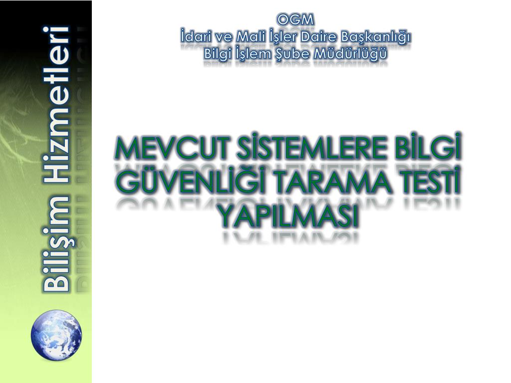 OGM İdari ve Mali İşler Daire Başkanlığı Bilgi İşlem Şube Müdürlüğü Bilişim Hizmetleri • MEVCUT SİSTEMLERE BİLGİ GÜVENLİĞİ TARAMA TESTİ YAPILMASI