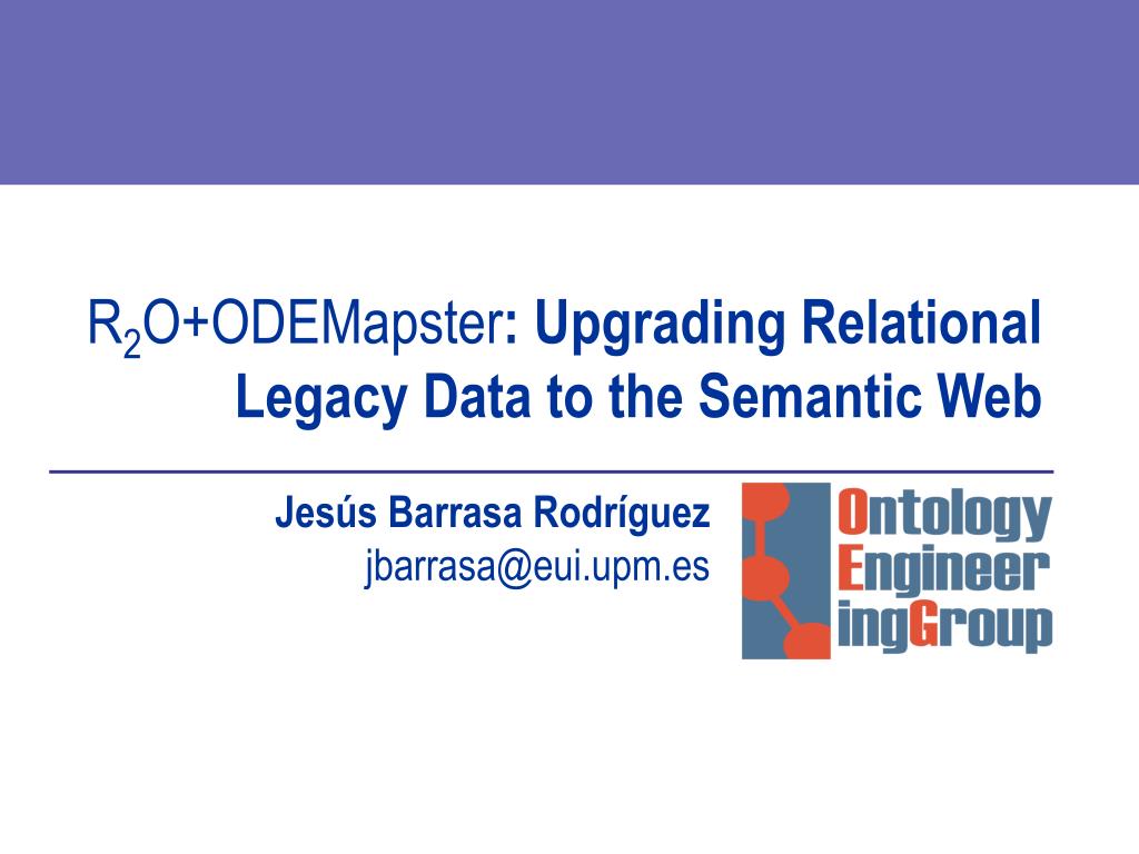 R2O+ODEMapster: Upgrading Relational Legacy Data to the Semantic Web Jesús Barrasa Rodríguez jbarrasa@eui.upm.es