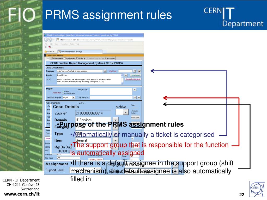 PRMS assignment rules • Purpose of the PRMS assignment rules • Automatically or manually a ticket is categorised • The support group that is responsible for the function is automatically assigned • If there is a default assignee in the support group (shift mechanism), the default assignee is also automatically filled in 22