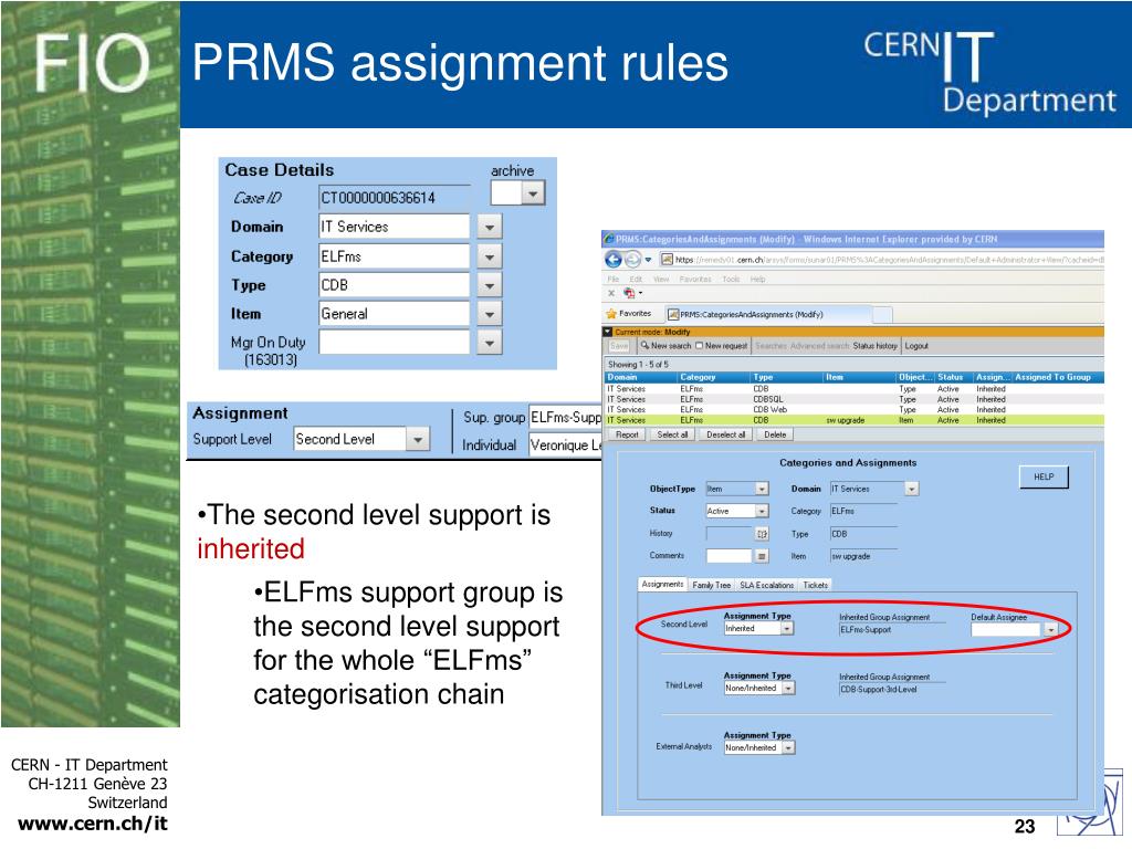 PRMS assignment rules • The second level support is inherited • ELFms support group is the second level support for the whole “ELFms” categorisation chain 23