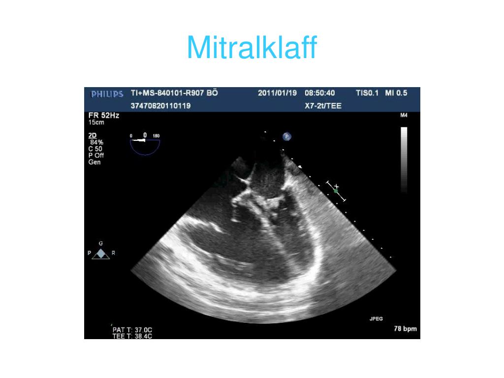 Diagnos MR TTE men bör kompletteras med TEE • Anatomisk kartläggning • VF+VK förstorade • Colour doppler, asymetrisk systolisk jet • Utbredning, längd i förhållande till förmaksstorlek • Pulsad doppler • Systolisk reversering av lungvensflöde