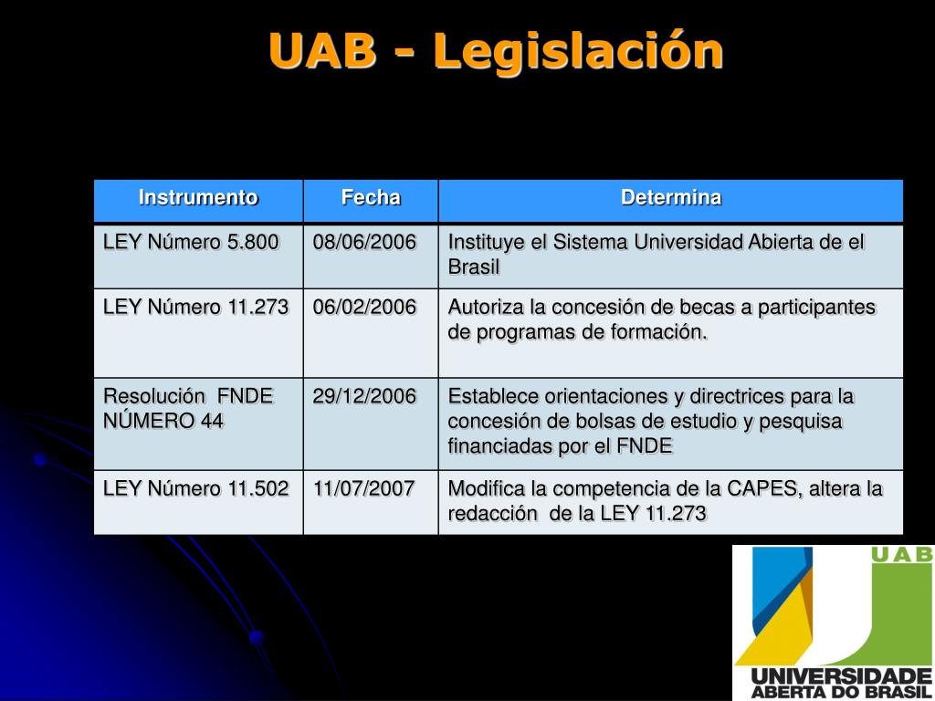 LA UNIVERSIDAD ABIERTA DE EL BRASIL - Misiones de la UAB - • Financiamiento • Foro de las Estatales para la educación • Ministerio de la Educación
