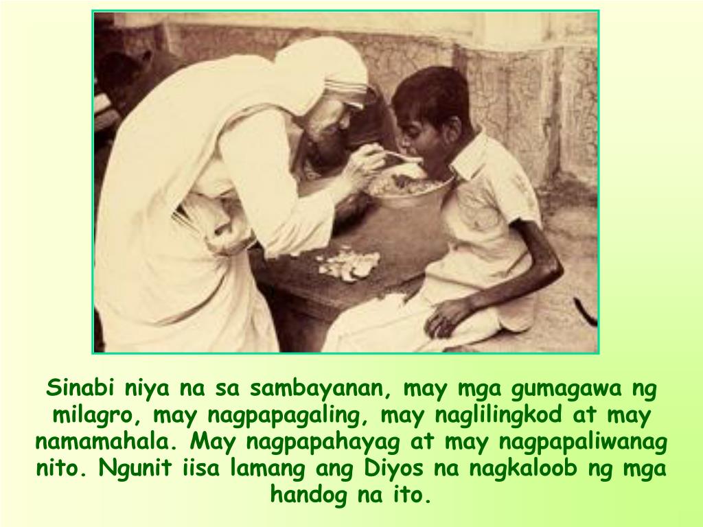 (…) Huwag mong maliitin ang hinihiling sa iyo ng Diyos sa sandaling ito. Kahit mukhang maliit at paulit-ulit ang ating ginagawa araw-araw, lahat tayo ay kabilang sa iisang katawan. Bilang mga bahagi, bawat isa ay kasali sa ginagawa ng buong katawan. Kahit nananatili tayo sa lugar na ninais sa atin ng Diyos.