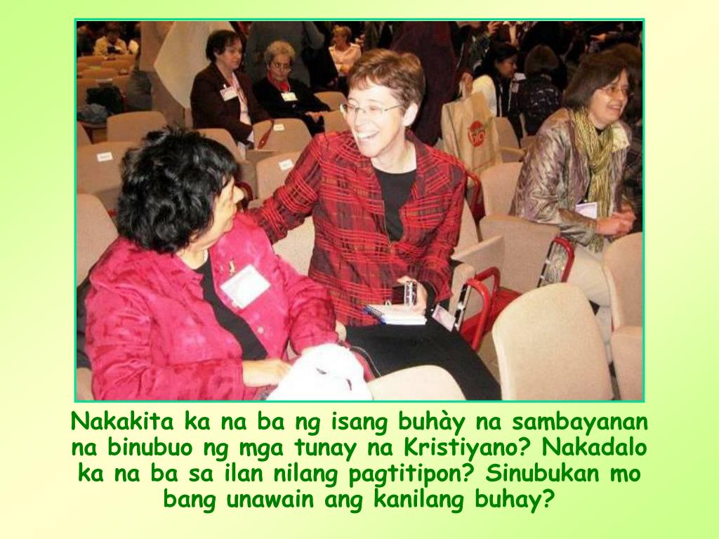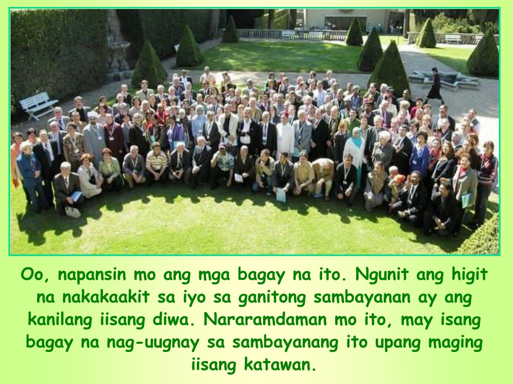 Oo, napansin mo ang mga bagay na ito. Ngunit ang higit na nakakaakit sa iyo sa ganitong sambayanan ay ang kanilang iisang diwa. Nararamdaman mo ito, may isang bagay na nag-uugnay sa sambayanang ito upang maging iisang katawan.