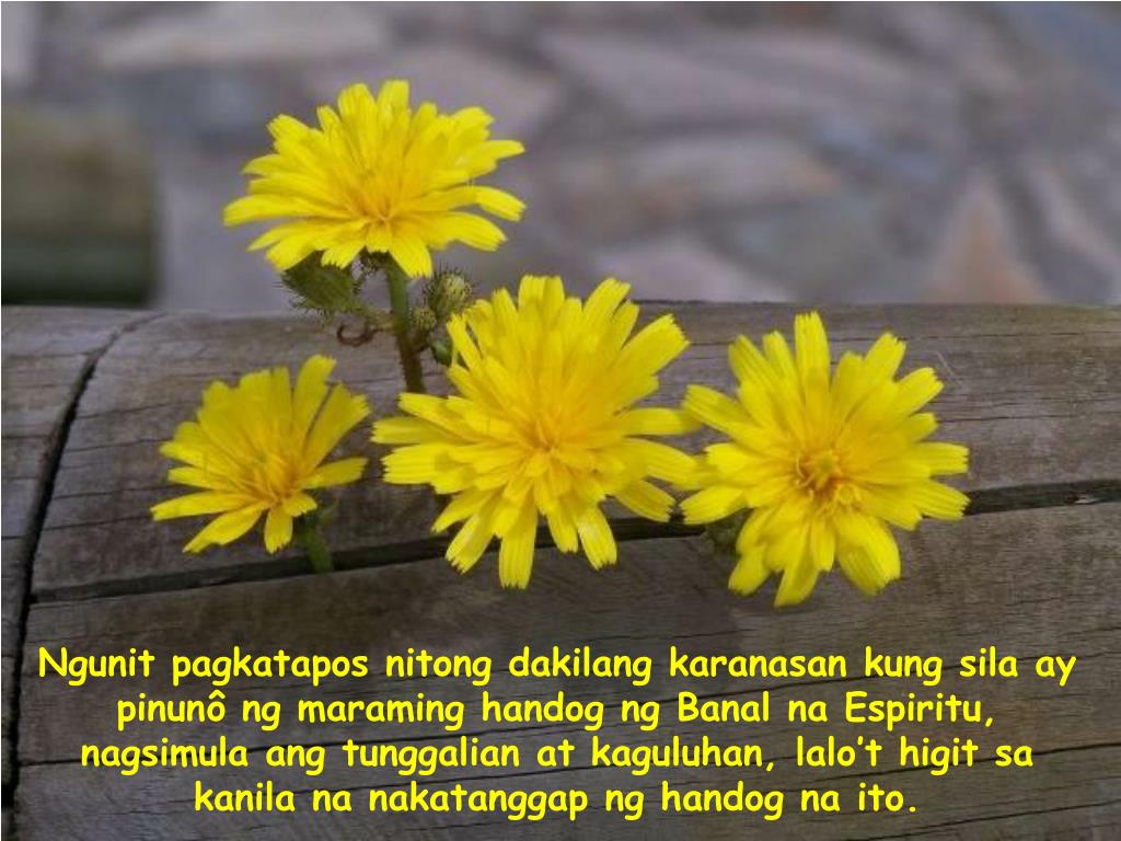 Ngunit kung tayo’y magkakaiba, bawat isa sa atin ay maaaring maging handog para sa iba. Kaya’t maging totoo tayo sa sarili at matutupad natin ang plano sa atin ng Diyos sa ugnayan natin sa kapwa. Sa sambayanan kung saan ang magkakaibang handog ay tunay na ginagamit sa paglilingkod sa lahat, tinawag ni Pablo ang katotohanang ito ng magandang pangalan: Kristo.