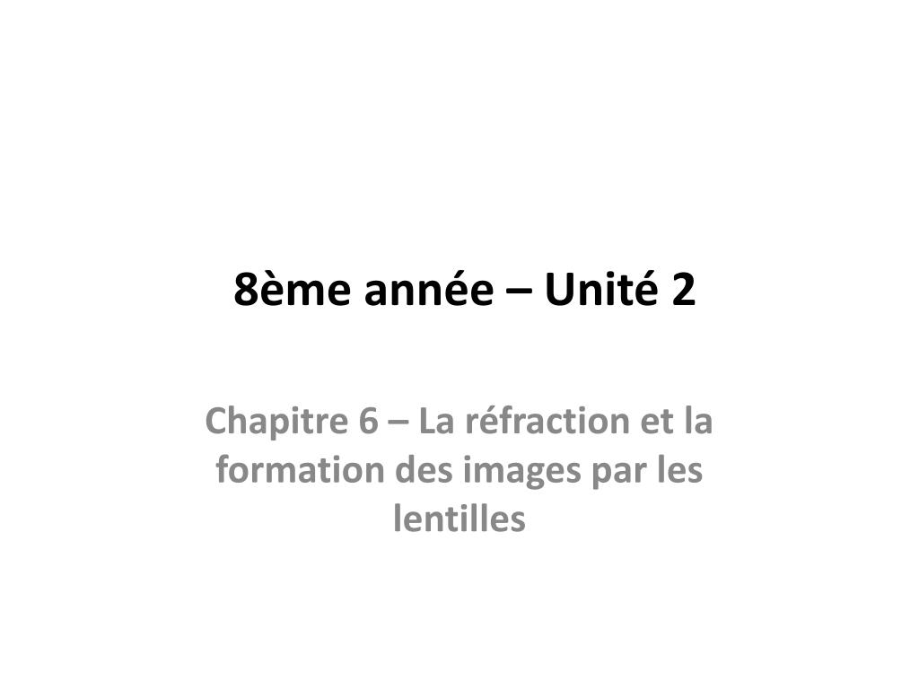 8ème année – Unité 2 Chapitre 6 – La réfraction et la formation des images par les lentilles
