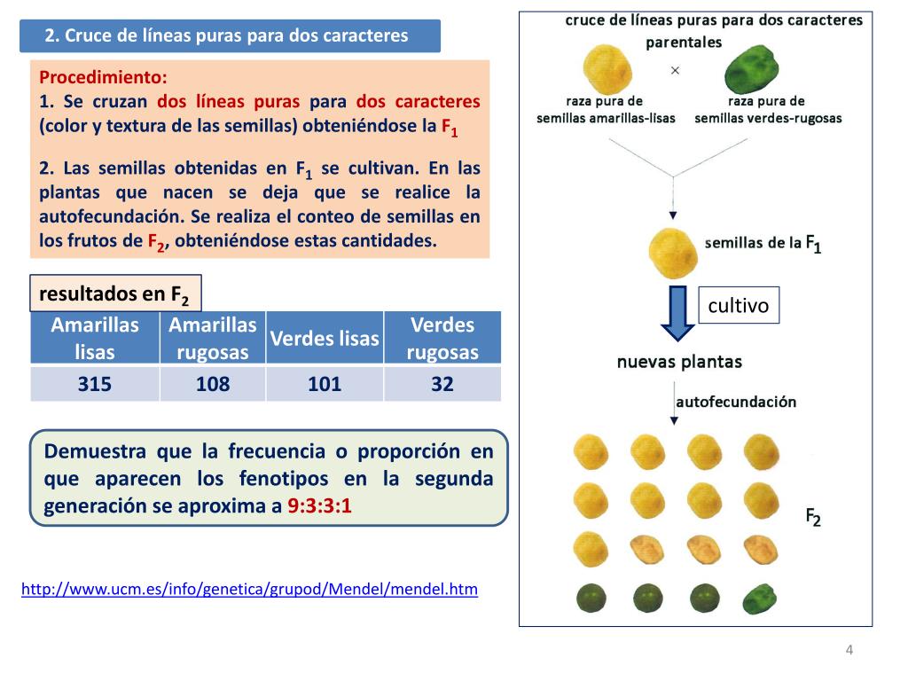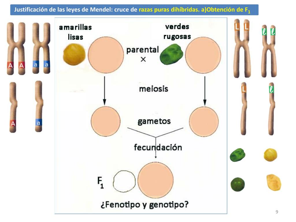 A) obtención de F1 B) obtención de F2 • Justificación de las leyes de Mendel: cruce de razas puras y cruce de los híbridos de F1 ¿Coincide con las frecuencias que encontró Mendel?
