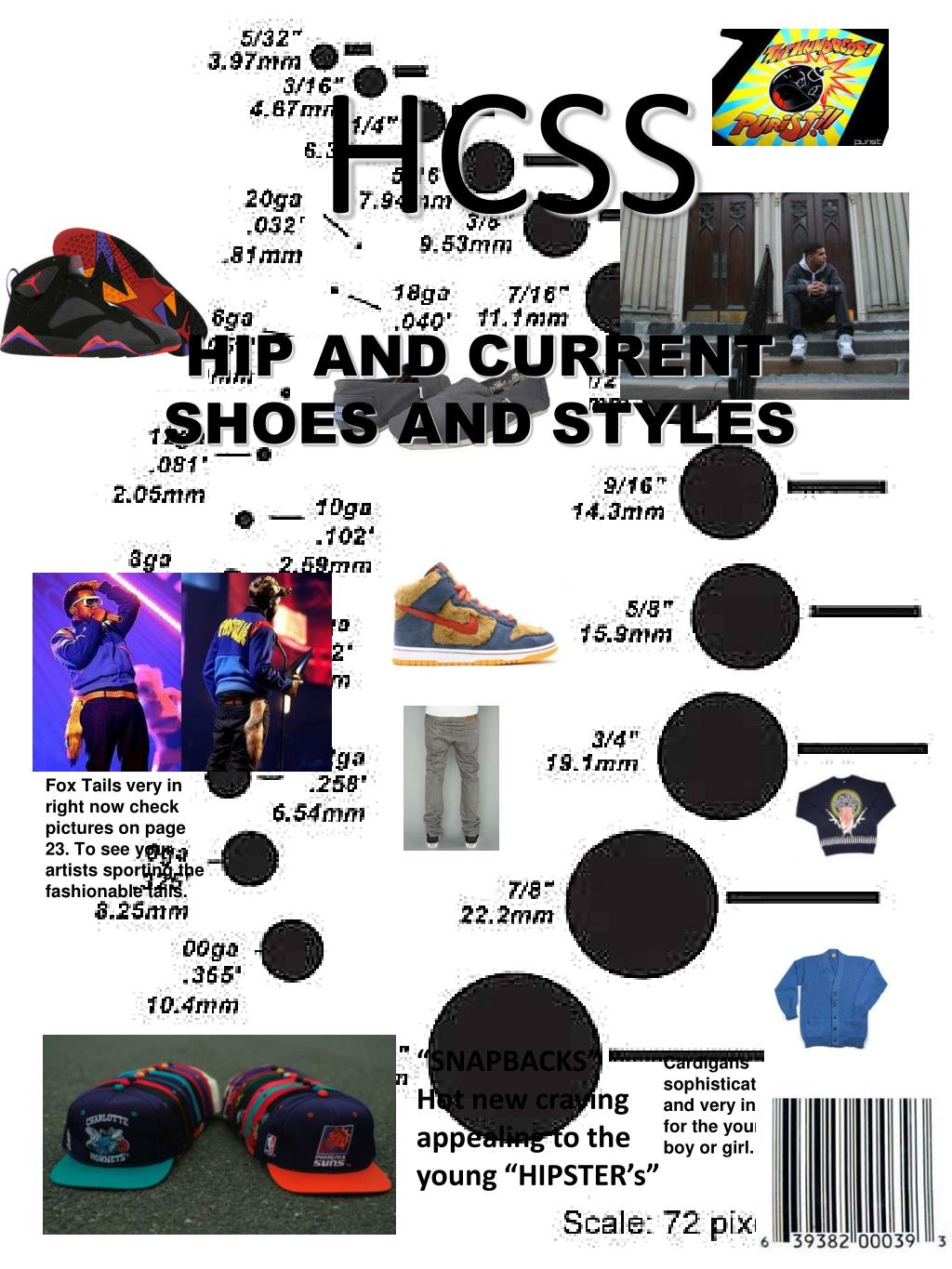 HCSS HIP AND CURRENT SHOES AND STYLES Fox Tails very in right now check pictures on page 23. To see your artists sporting the fashionable tails. “SNAPBACKS” Hot new craving appealing to the young “HIPSTER’s” Cardigans sophisticated and very in style for the young boy or girl.