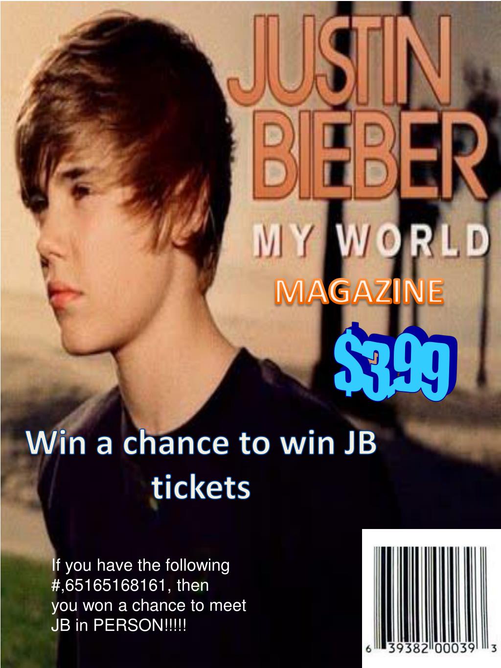 MAGAZINE $3.99 Win a chance to win JB tickets If you have the following #,65165168161, then you won a chance to meet JB in PERSON!!!!!