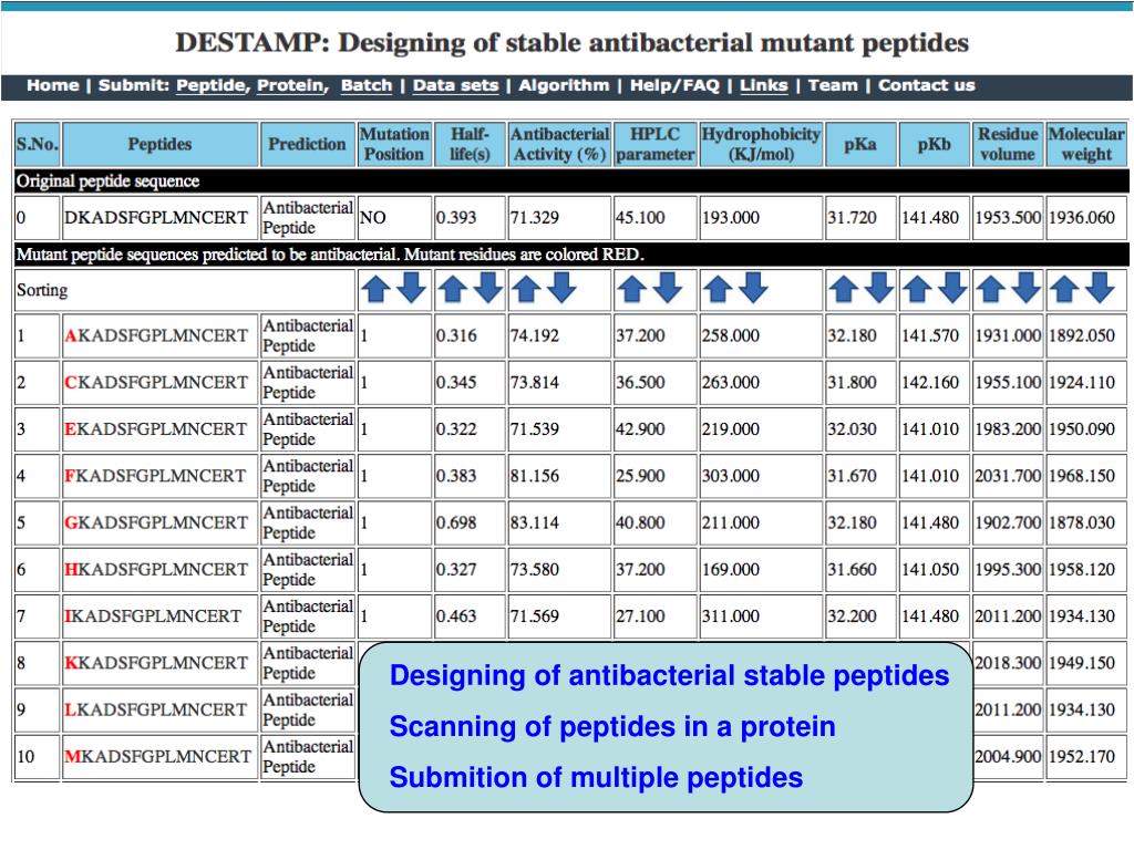 Designing of antibacterial stable peptides Scanning of peptides in a protein Submition of multiple peptides