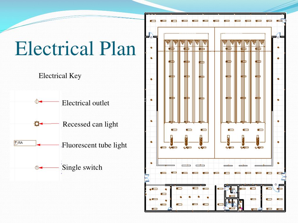 Electrical Plan Electrical Key Electrical outlet Recessed can light Fluorescent tube light Single switch