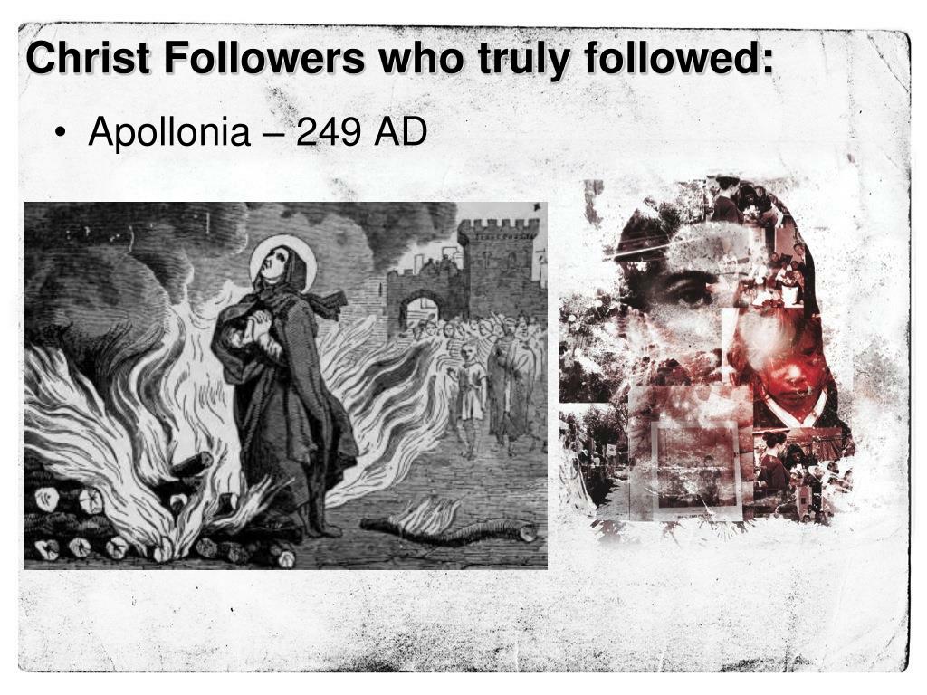 Christ Followers who truly followed: • Apollonia – 249 AD