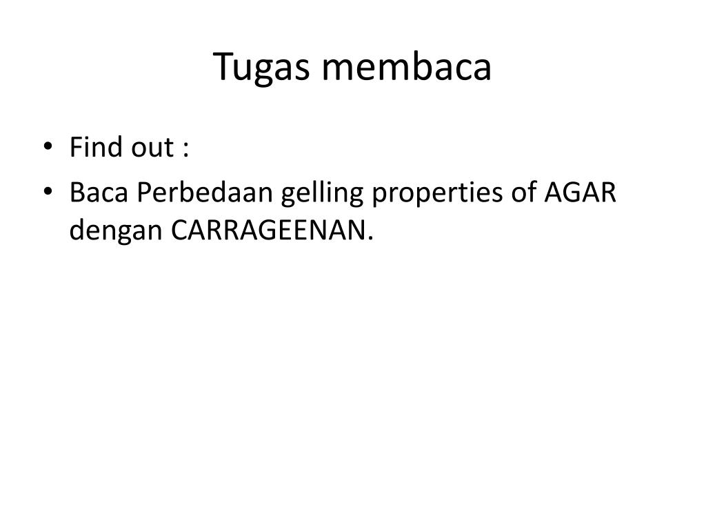 Tugas membaca • Find out : • Baca Perbedaan gelling properties of AGAR dengan CARRAGEENAN.