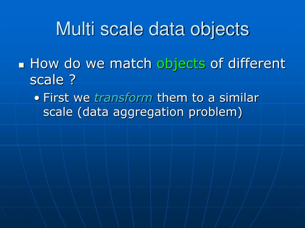 Multi scale data objects • How do we match objects of different scale ? • First we transform them to a similar scale (data aggregation problem)