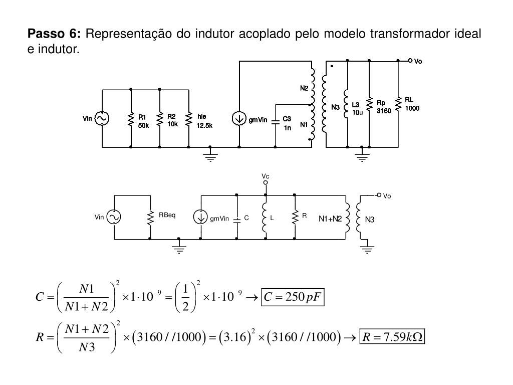 Passo 6: Representação do indutor acoplado pelo modelo transformador ideal e indutor.