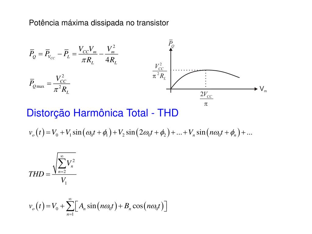 Potência máxima dissipada no transistor Distorção Harmônica Total - THD