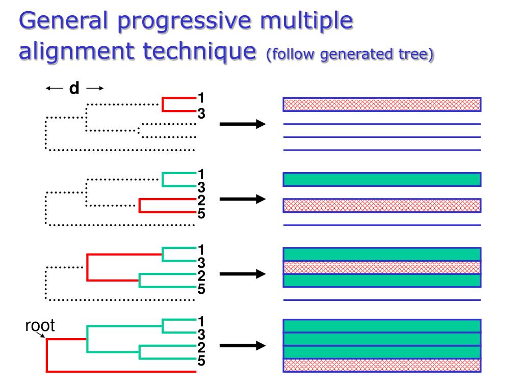 General progressive multiple alignment technique(follow generated tree) d 1 3 1 3 2 5 1 3 2 5 1 root 3 2 5
