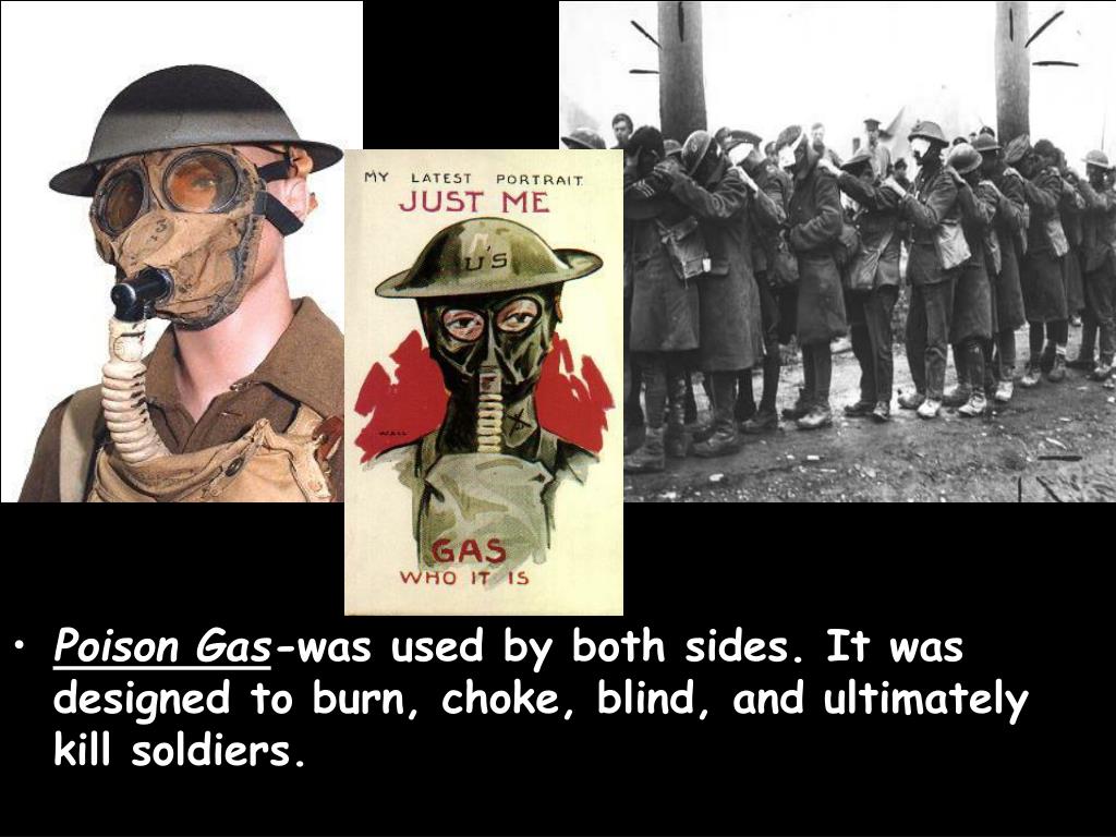 Poison Gas-was used by both sides. It was designed to burn, choke, blind, and ultimately kill soldiers.