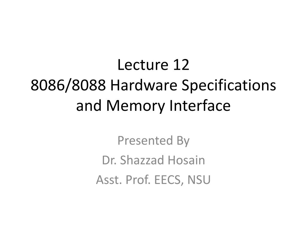 Lecture 128086/8088 Hardware Specifications and Memory Interface Presented By Dr. ShazzadHosain Asst. Prof. EECS, NSU