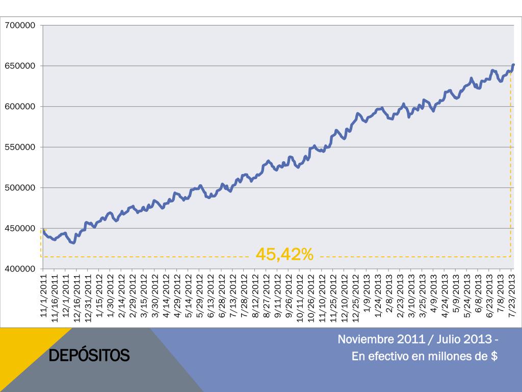 Depósitos 45,42% Noviembre 2011 / Julio 2013 - En efectivo en millones de $