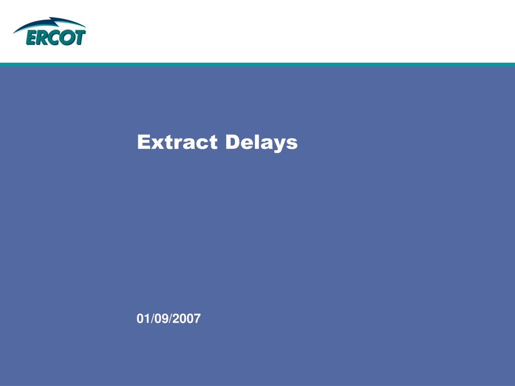 Extract Delays. EIS Extract Delays. Problem Extracts of Lodestar data from the ODS to the market have been delayed due to above normal lag in processing time Cause