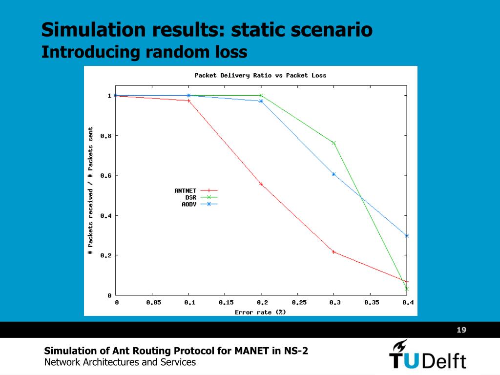 MSc thesis presentation. Simulation of Ant Routing Protocol for Ad-hoc networks in NS-2. FJ Arbona Bernat E-mail: <f.j.arbonabernat@student.tudelft.nl>. Supervisor: prof.dr.ir. P.F.A. Van Mieghem Mentor: ir. S.S. Dhillon Advisor: dr.ir. F.A. Kuipers. November 22, 2006.