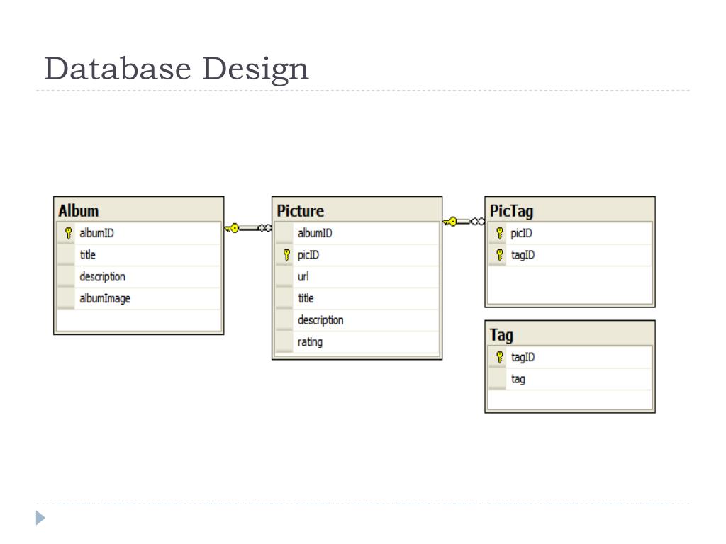 slickr Alpha Goals and Observations Goals Observations • Gain experience with both Drag n’ Drop database controls as well as writing code to access databases • Design queries so that they can be reused later • Understand relationships between object model (class diagram) and database model (database diagram) • Most students hadn’t seen stored procedures before • Some confusion between object modeling and database representation • General: Where does it go?