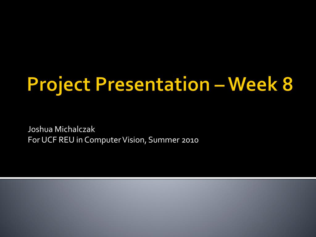 Joshua Michalczak For UCF REU in Computer Vision, Summer 2010 Project Presentation – Week 8
