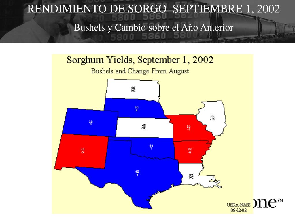RENDIMIENTO DE SORGO SEPTIEMBRE 1, 2002 Bushels y Cambio sobre el Año Anterior