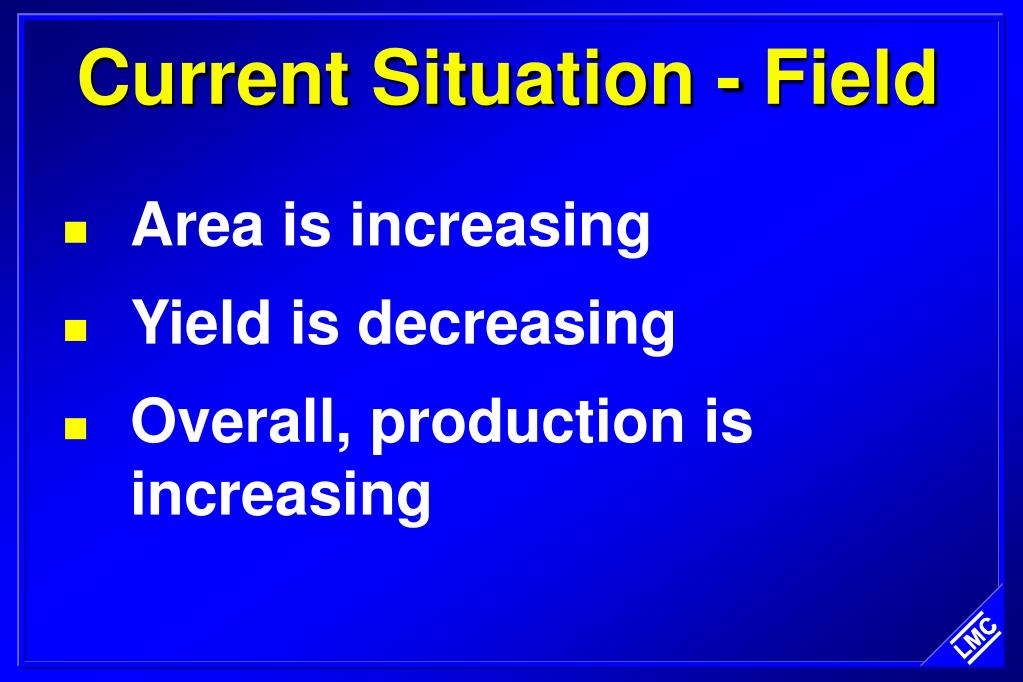 Current Situation - Field • Area is increasing • Yield is decreasing • Overall, production is increasing