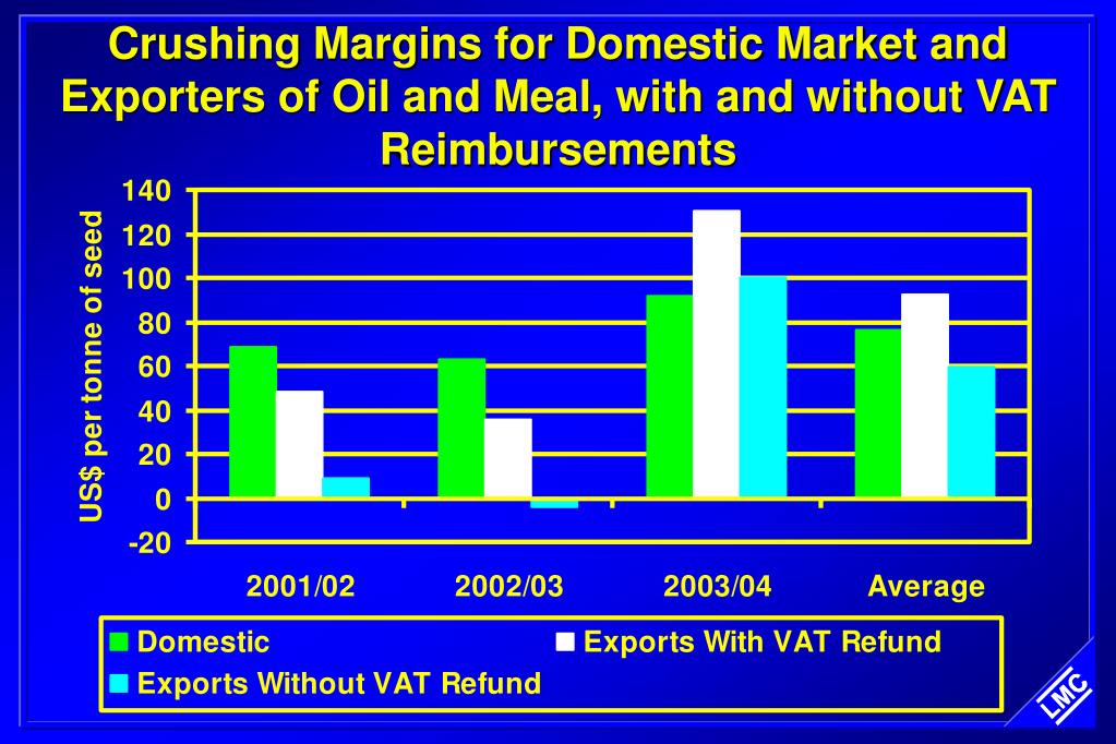 Crushing Margins for Domestic Market and Exporters of Oil and Meal, with and without VAT Reimbursements