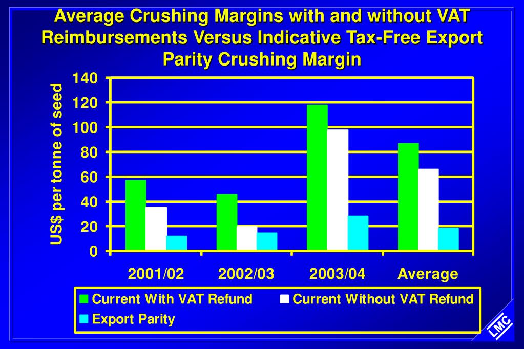Average Crushing Margins with and without VAT Reimbursements Versus Indicative Tax-Free Export Parity Crushing Margin