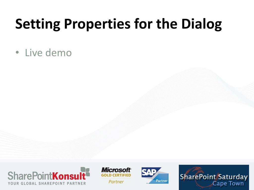 Setting Properties for the Dialog • Live demo