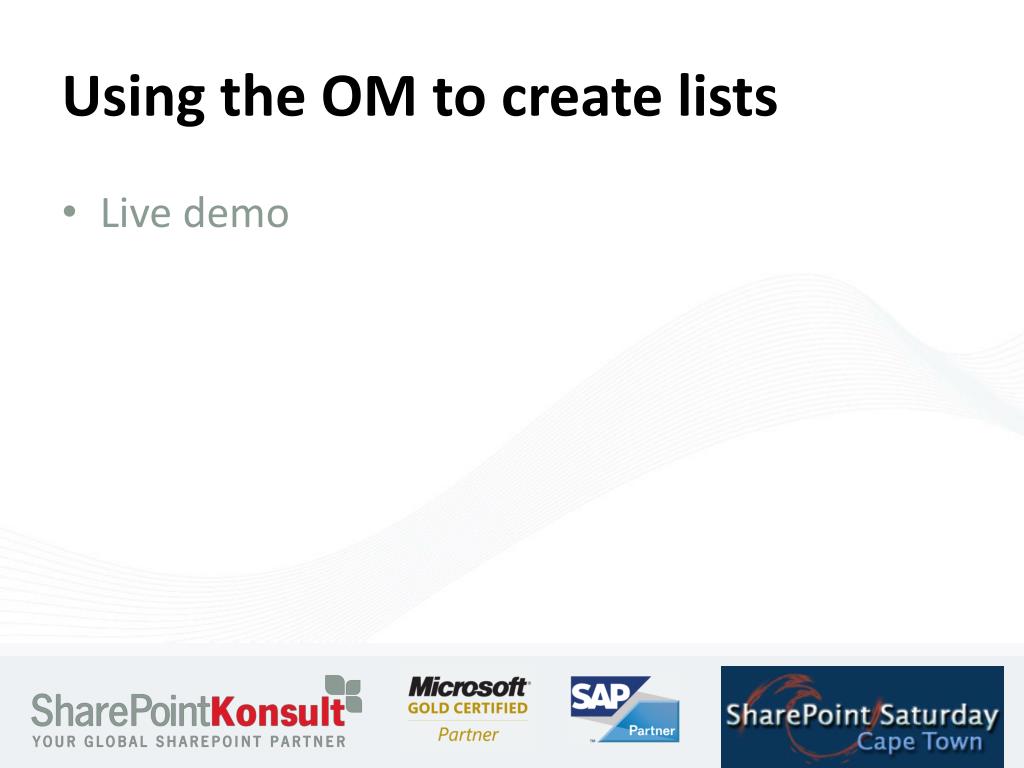Using the OM to create lists • Live demo