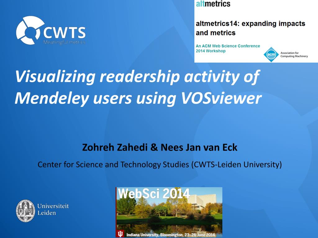Visualizing readership activity of Mendeley users using VOSviewer. Zohreh Zahedi & Nees Jan van Eck Center for Science and Technology Studies ( CWTS-Leiden University). 23 June 2014. Introduction. Mendeley : one of the most important altmetric tools